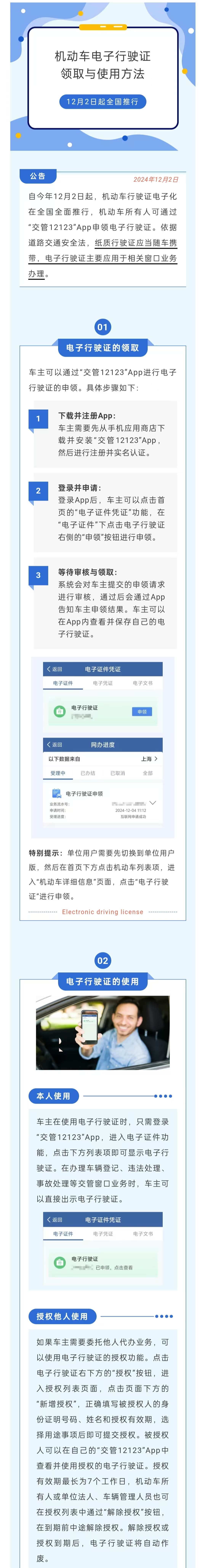 中国大地保险潮州中心支公司温馨提示:机动车电子行驶证12月2日起全国推行,车主领取与使用方法