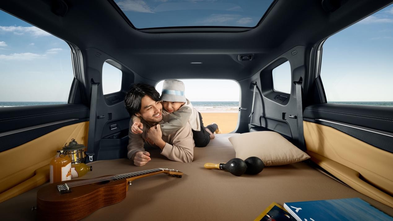 此外,单人作钓情况下,还可将第2、3排座椅具备全部放倒,将前后排座椅放倒后,超大装载容积可扩充至2360L。即便海钓连杆两条金枪鱼,也能装的下。不装物时,还能放一张2.2米订制大床,秒变“房车”。