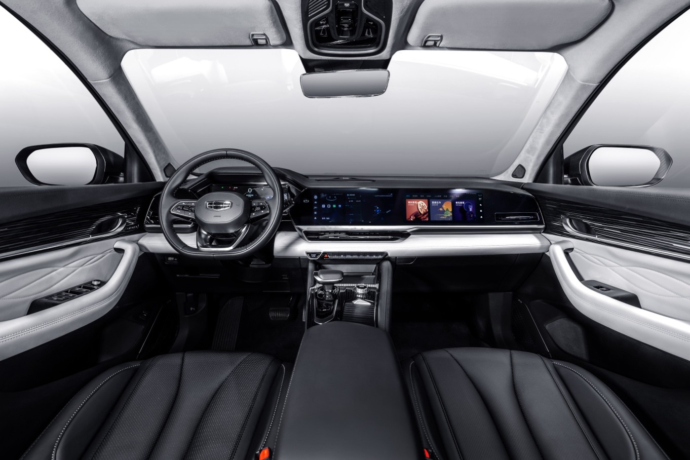 内饰方面,星越L采用了以往没有的新配色,白+黑的双拼色设计,让整个内饰显得比较清爽,不会那么沉闷。在用料方面也比较讲究,中控台以及门板处和座椅均采用软性材质包裹,搭配缝线工艺具有很好的质感。