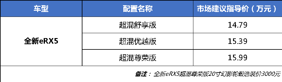 此次全新eRX5调价之后,同配置插电混动车型与燃油车型之间价差减少到 25,000 元,价格梯度相比其他自主品牌同类产品更趋合理。对于选择插电混动车型的用户而言, 售价将更加亲民。同时,随着新的市场建议指导价调整落地,全新 eRX5 媲美合资品牌的越级品质实力和丰富的产品配置相比市场头部竞品将更具竞争力。