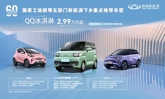 自6月份启动以来,2023年新能源下乡活动受到社会各界关注。奇瑞新能源作为全球精品智能纯电小车引领者,率先响应国家政策,携旗下的QQ冰淇淋、小蚂蚁、无界Pro三款精品纯电小车开启新能源下乡之旅。活动中,奇瑞新能源始终遵循“以客户为中心”的理念,倾听到乡镇居民希望车型更经济、实用的声音,从而诚意打造QQ冰淇淋雪糕款,用实际行动满足乡镇居民的专属用车需求。