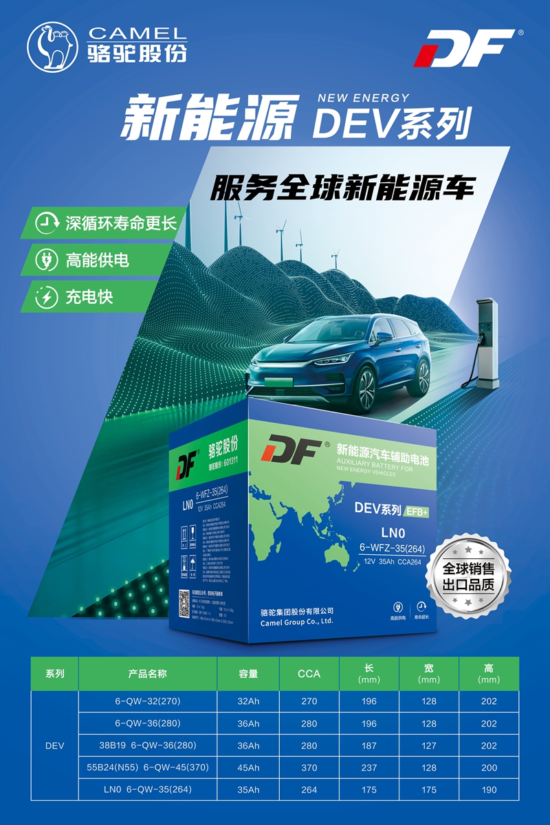 DF多年来深耕蓄电池行业,坚持以技术创新驱动品牌发展。此次上新的DEV系列新能源低压辅助电池是DF品牌的又一匠心之作。DEV系列新能源低压辅助电池深度循环能力更符合新能源车对于12伏低压电源的使用工况,带来更长的使用寿命和更优秀的放电表现。