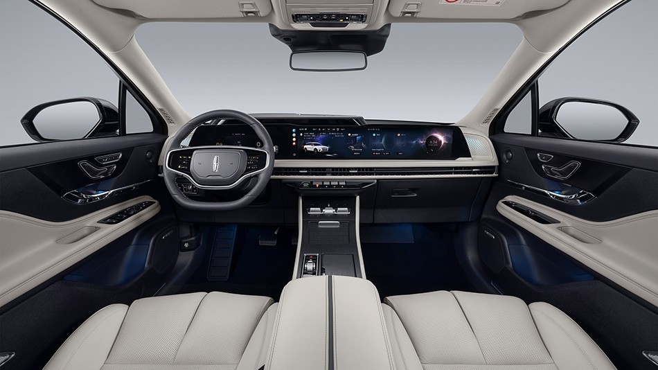全新林肯冒险家不仅在外观上进行了焕新,内饰同样也采用了全新的设计,整体更加简洁也更具科技感。全系标配12.3英寸全数字仪表盘与27英寸贯穿式全景屏,4K UHD超高清分辨率色彩丰富,不仅拥有很强的视觉冲击力,更拥有丰富的功能,提供了协作与分屏智能操作模式,协作模式下副驾驶可在屏幕上协助完成导航、音乐等设置;在分屏模式下,主驾驶查看导航的同时,副驾可以拥有独立的娱乐空间,听音乐或者看上一部电影。