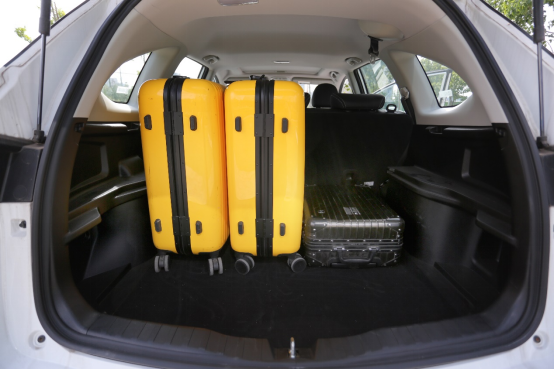 而欧尚X5长宽高分别为4490x1860x1580mm,轴距2710mm。在实际体验过后我发现,虽然它的轴距更长,但车内整体空间表现依然明显不如哈弗M6 PLUS,而且为了动感造型,牺牲了不少横向的后排空间导致多人乘坐时略显拥挤,甚至后备箱的储物空间也是相当局促。当时在欧尚店内看车时恰好手边有一个较大尺寸的行李箱,于是随手拿起对比后备箱空间,纵向放入后它后备箱的剩余空间已然所剩不多,由此来看要作为一款家用车来说,在空间实用方面,欧尚 X5远不如哈弗M6 PLUS来得更加实际。